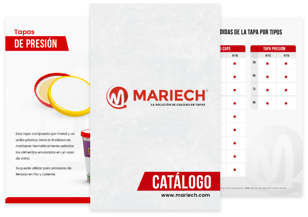 Mariech fue establecido en 1998 como respuesta a la falta de una empresa nacional que pudiera satisfacer de manera integral las necesidades de fabricación de tapas de presión y metálicas LUG CAP en diferentes diámetros para la industria alimentaria. Con el tiempo, nos hemos diversificado y hemos ampliado nuestra oferta para incluir envases de vidrio y envases de plástico fabricados internamente con los mejores materiales y tecnología.